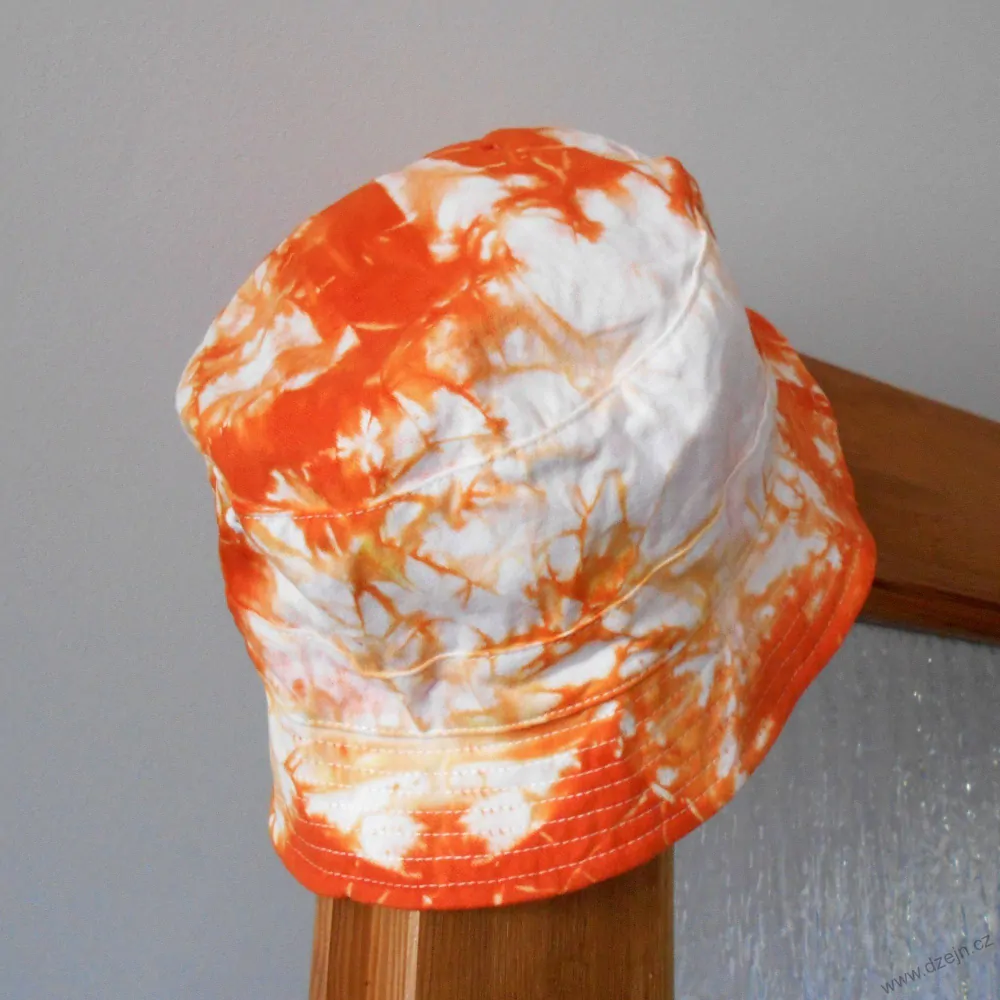 Batikovaný klobouček - bílo-oranžový