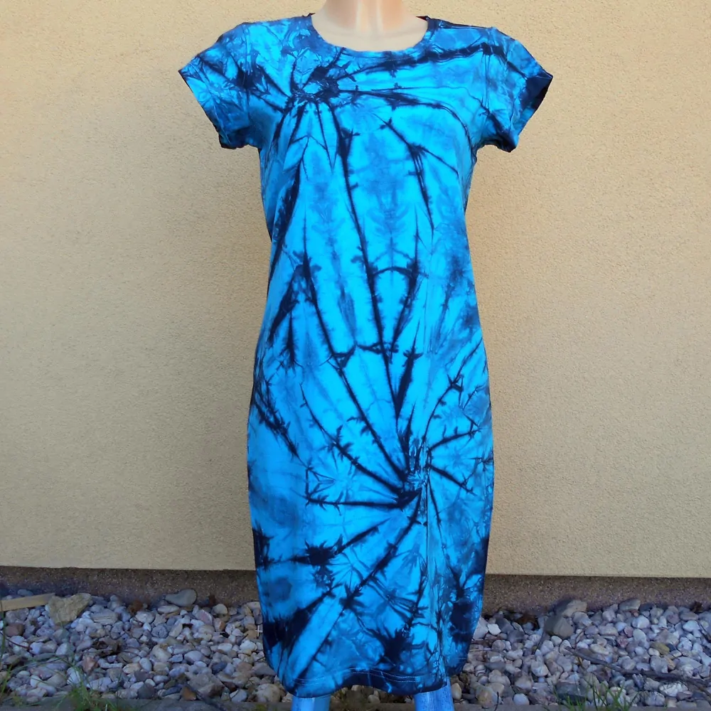 Dámské tyrkysovo-černé batikované šaty M