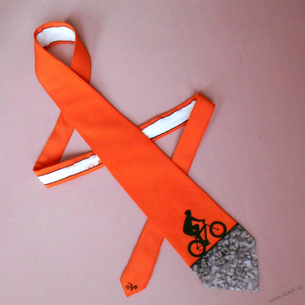 Hedvábná kravata s cyklistou - černo-oranžováskladem 1 ks710 Kč/ ks