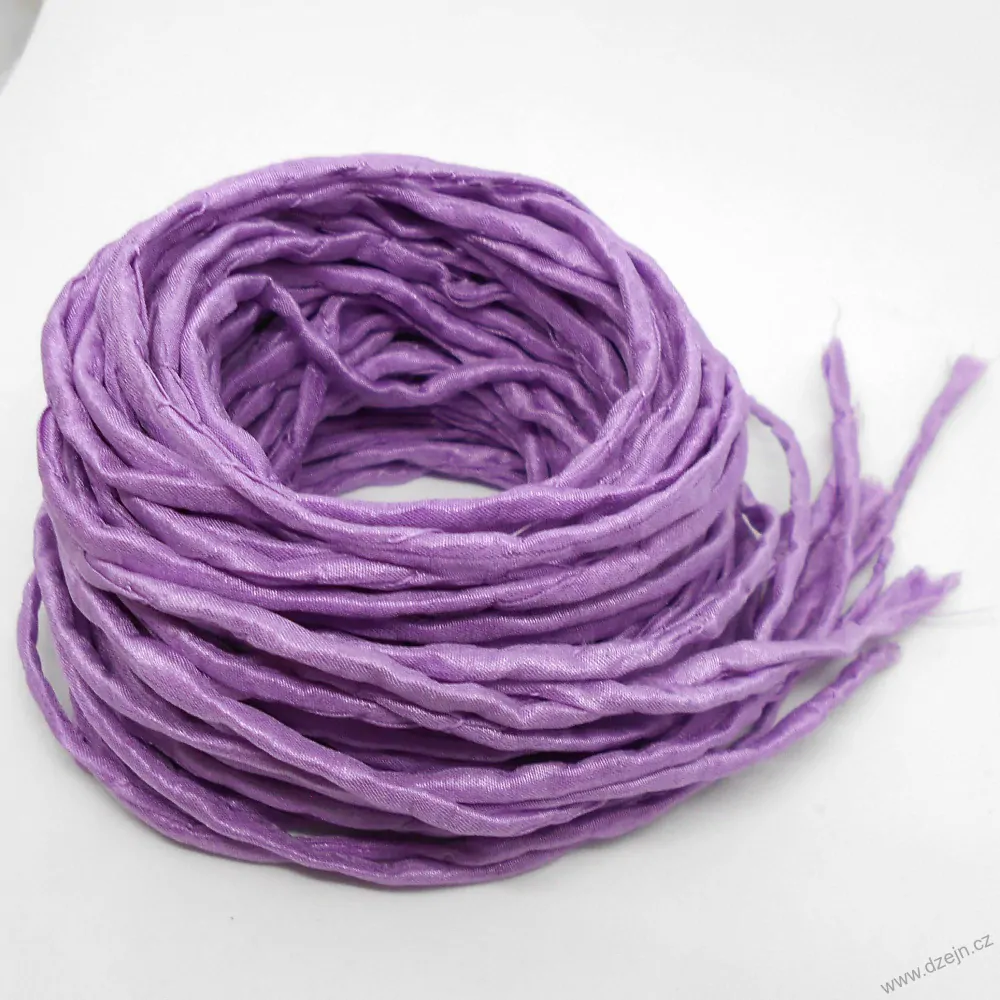 Hedvábná šňůrka z pravého přírodního hedvábí pongé 5 je ručně barvená středně fialovou barvou. Délka šňůrky je 105-110 cm, průměr cca 2 mm. Šňůrka je plochá a lze ji protáhnou i dírkou o průměru 1 mm.