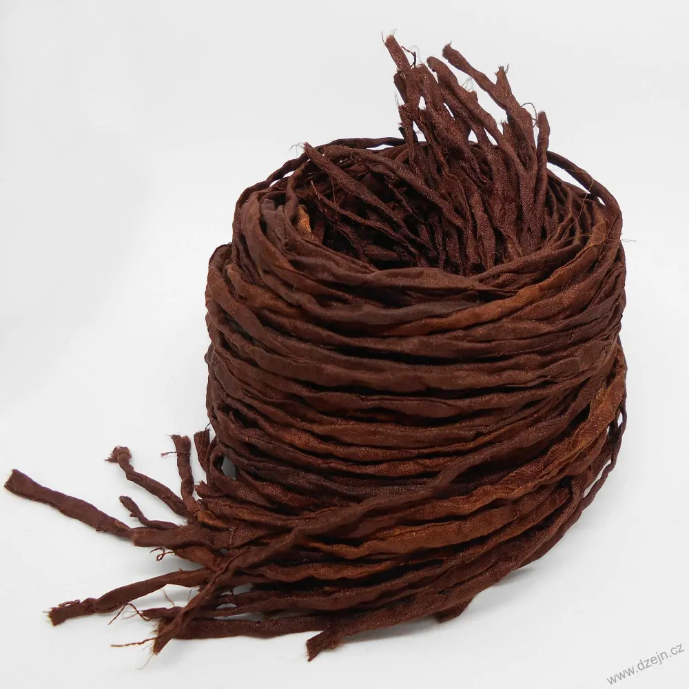 Hedvábná šňůrka tmavě hnědá, trochu strakatá