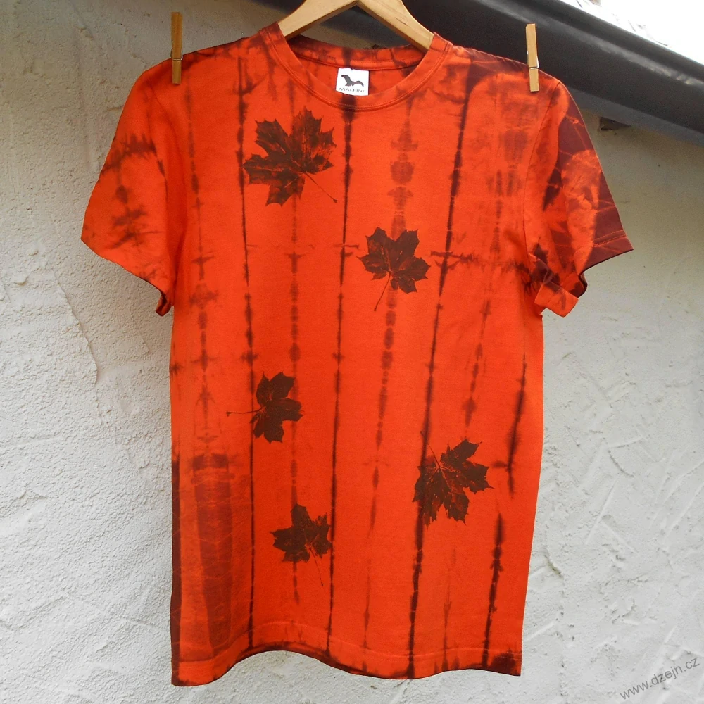 Oranžovo-hnědé batikované triko s listy Lskladem 1 ks450 Kč/ ks