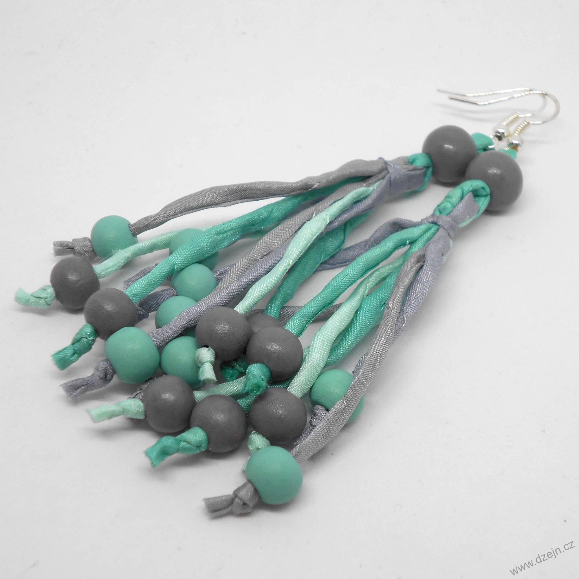 Šedo-mentolové náušnice hedvábí-dřevona dotaz130 Kč/ ks