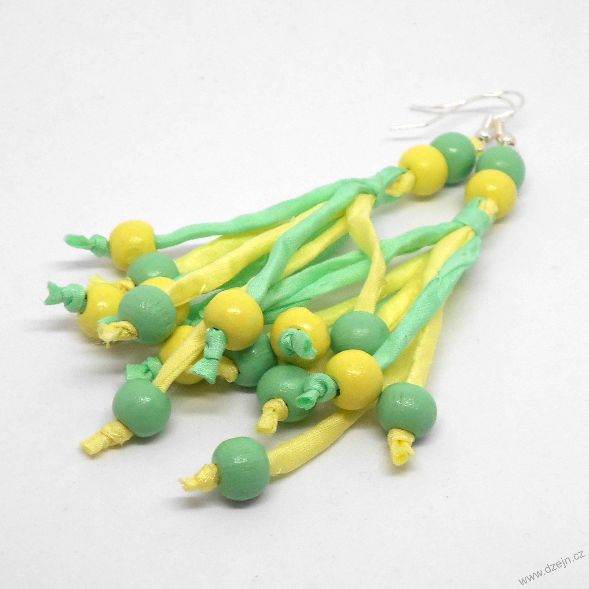 Žluto-mentolové náušnice hedvábí-dřevoskladem 1 ks130 Kč/ ks