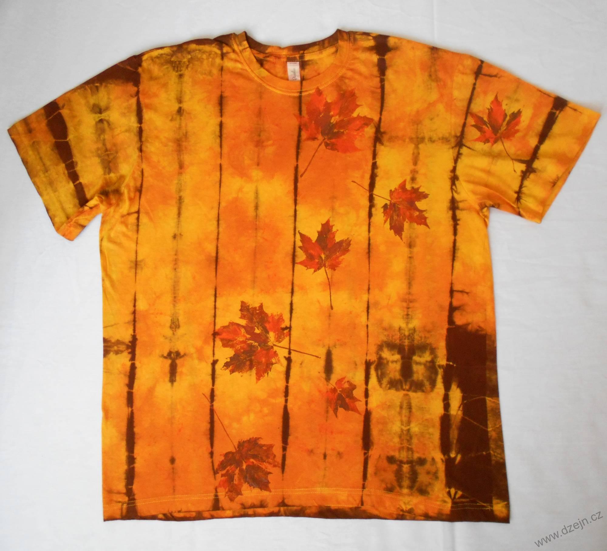 Žluto-oranžovo-hnědé batikované triko s listy XLna dotaz410 Kč/ ks